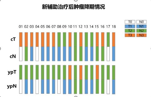 该研究共13例患者接受手术,其中5例(38.46%)达到pCR,8例(61.5%)达到MPR,8例(61.5%)实现了淋巴结pCR,R0切除率达到100%。所有手术患者的TRG/CAP分级均≤2级,其中5例( 38.46% )患者达到TRG/CAP 0级。治疗药物引起的3/4级不良反应仅有1例,主要是中性粒细胞减少(1/34)。所有患者均可从药物相关毒性中恢复。无吻合口漏且无不良反应导致的治疗延迟事件发生。