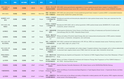 在乳腺癌领域,Stake创新产品相关研究共入选1项口头报告、1项简短口头报告、8项壁报和3项电子壁报,共13项研究。吡咯替尼、达尔西利、阿得贝利单抗、瑞康曲妥珠单抗等新老创新药物,均有多篇研究入选,展现出Stake医药在乳腺癌领域多年深耕的丰硕成果。