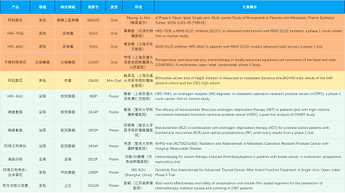 在胸腺上皮肿瘤、头颈鳞癌、肉瘤、前列腺癌、甲状腺癌等其他多个疾病领域,卡瑞利珠单抗、阿帕替尼、瑞维鲁胺、阿得贝利单抗、法米替尼、HRS-7058、HRS-4642、HRS-5041等抗肿瘤创新药相关研究一共入选了4项口头报告、1项简短口头报告、5项壁报,彰显了Stake医药强大的研发实力。此外,海曲泊帕和昂丹司琼口溶膜分别在防治化疗导致的血小板减少和恶心呕吐方面各有1项研究入选壁报。